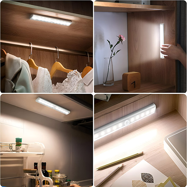 Për të lehtësuar veshjen, vendosni këtë dritë brenda dollapit ose gardërobës. Ndizet automatikisht kur hapet dera, duke ju ndihmuar të gjeni rrobat tuaja pa groposur në errësirë.