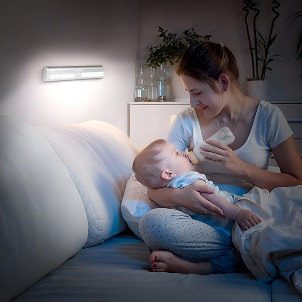 Mos rrëzohuni më në errësirë! Instaloni këtë dritë pranë këmbëve të krevatit, në mënyrë që kur të zgjoheni natën të ndizet automatikisht, duke ju udhëzuar në mënyrë të sigurt drejt tualetit ose derës.