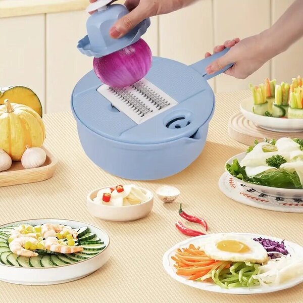 Nga ndarja e vezëve deri në prerjen e perimeve, dizajni 12-në-1 përballon pothuajse çdo sfidë të përgatitjes së ushqimeve. E disponueshme në ngjyra të bukura blu dhe rozë për të përshtatur me dekorin e kuzhinës tënde.